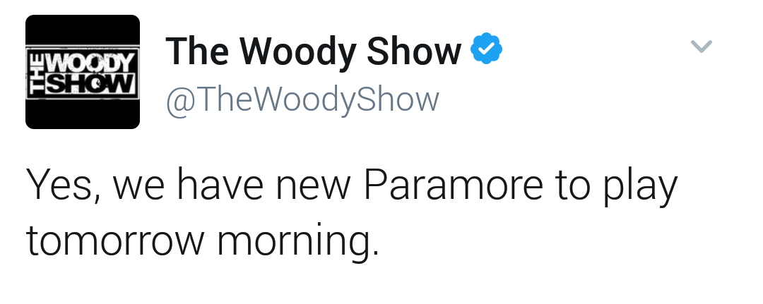 Sim, nós temos a nova do Paramore para tocar amanhã de manhã.
