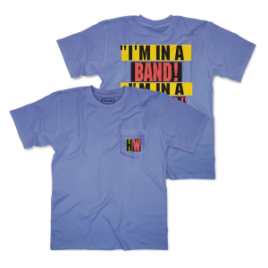 Temos também um design de camiseta com a frase “I’m in a band”, que é repetida como um grito durante a música Ice in My OJ, faixa que abre o EDAABP.