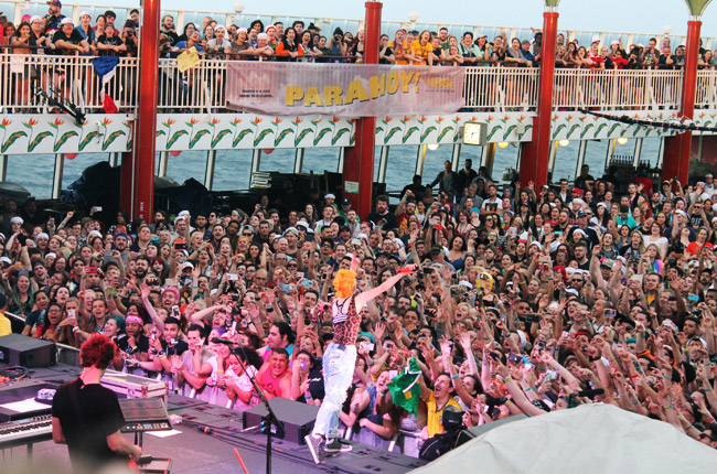 Paramore performando no deck da piscina no Parahoy!. Primeiro dia, 5 de Março de 2016. Foto de Trish Halpin.